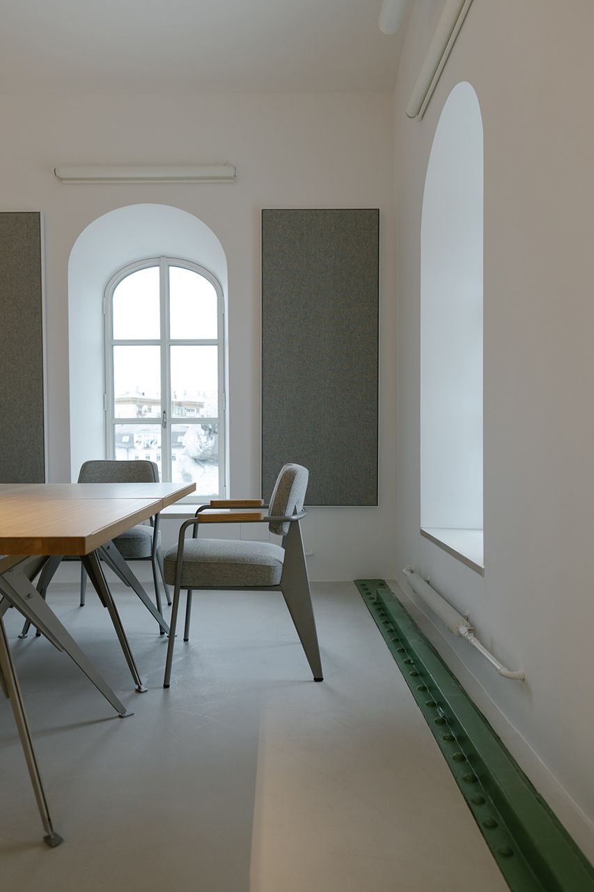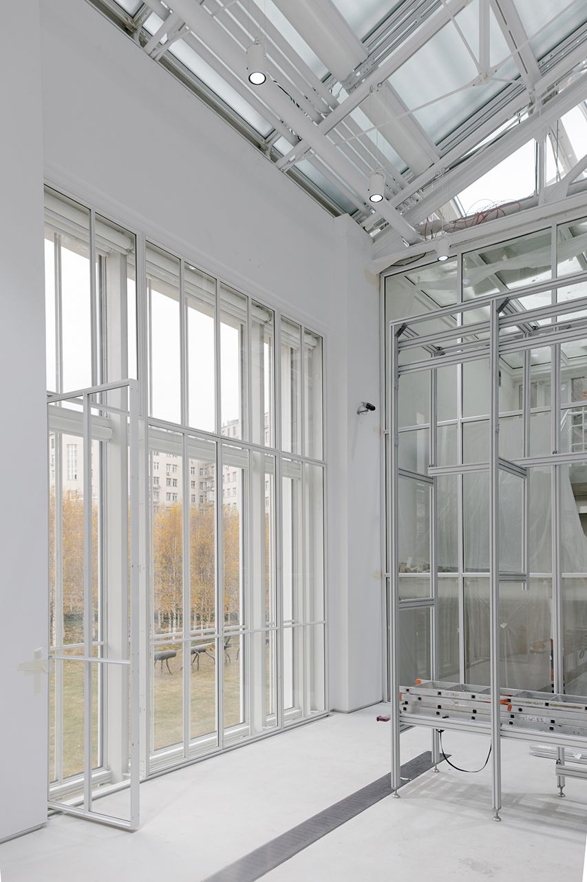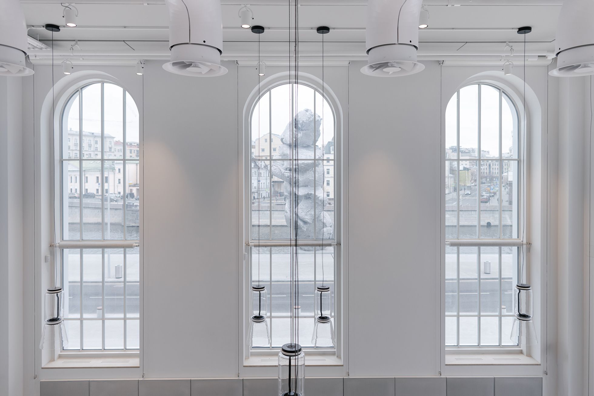 Примерно треть пространства составляют семь галерей разных размеров, они находятся в подвальных помещениях (их вырыли специально под проект), а также на втором этаже. Посетитель не сталкивается с ними «в лоб» — попадая в здание, он первым делом видит просторные своды, а сквозь окна за противоположной стеной — березовую рощу.