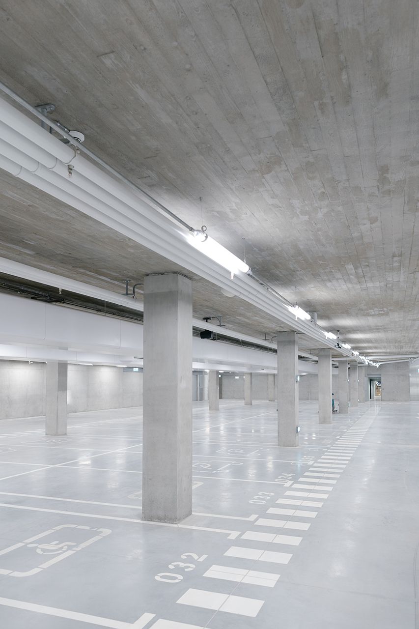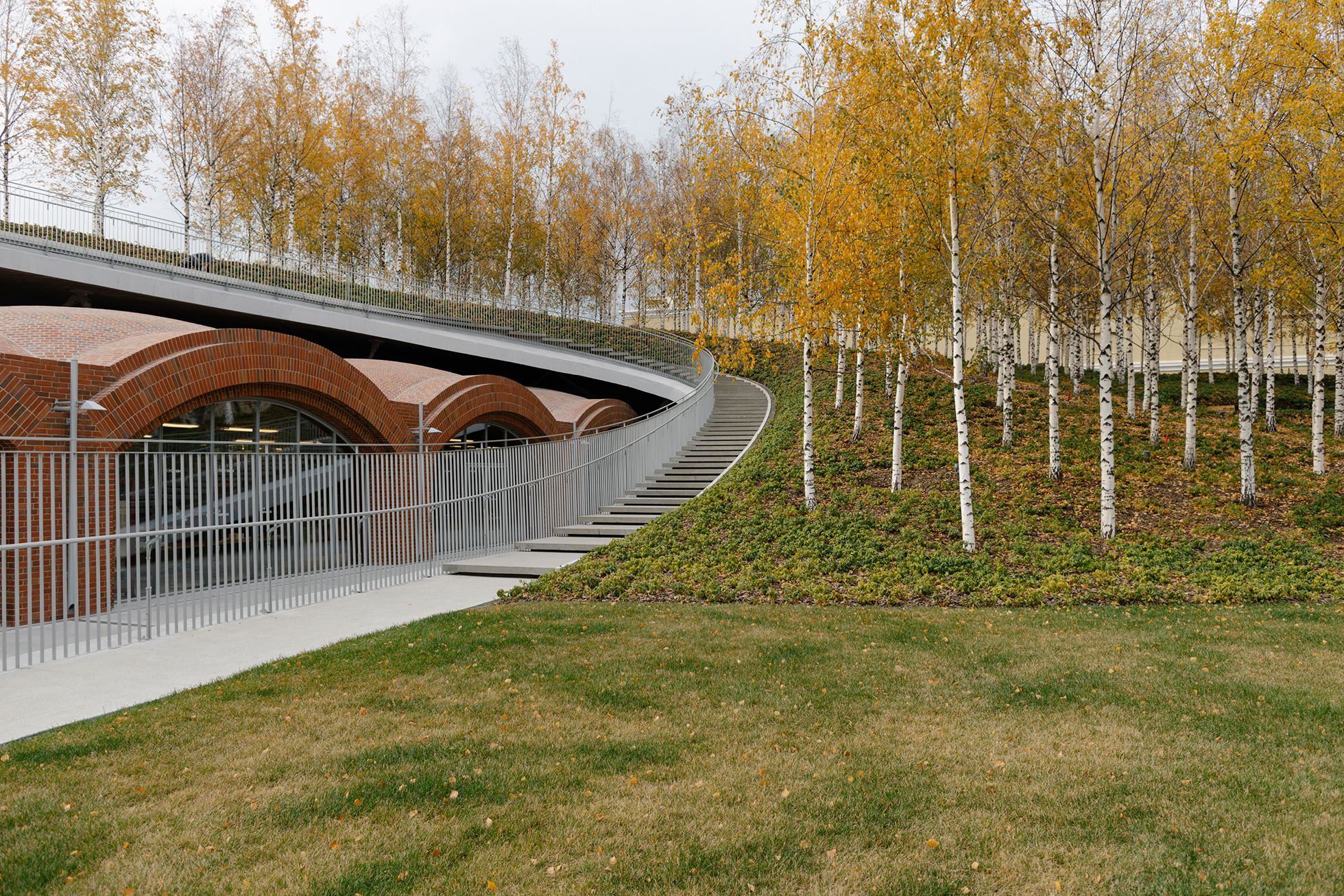 Со стороны склона посетители попадают на смотровую площадку, откуда открывается вид всю территорию Дома культуры. Под рощей спрятана двухуровневая подземная парковка, которая также может использоваться для перформансов, концертов и вечеринок. Это пространство находится под землей, поэтому жители соседнего Дома на набережной не услышат громкой музыки.