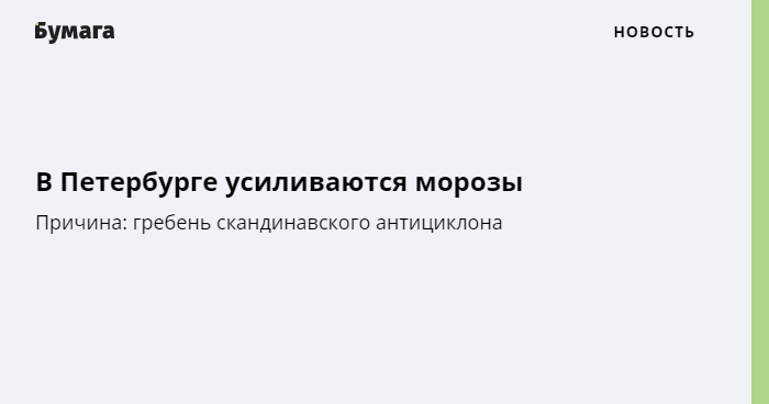 На погоду в Петербурге в ближайшие дни будет влиять гребень скандинавского антициклона — он прекратит снегопады, но усилит морозы. Об этом сообщил синоптик центра «Фобос» Михаил Леус.