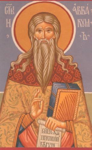 "Священномученик и исповедник Аввакум" Фреска в Ильинском приделе Никольского храма (Москва) Аввакум (1620 – 1682) родился в семье сельского священника Петра, сына Кондратьева, в селе Григорово под Нижним Новгородом. Отец его был привержен «питию хмельному», воспитанием детей, видимо, больше занималась мать – «постница и молитвенница», внушившая сыну глубокое религиозное чувство. В семнадцать лет Аввакум женился на четырнадцатилетней дочери кузнеца Анастасии Марковне. В 1642 году был рукоположен в дьяконы, два года спустя – в священники. Стал служить в церкви села Лопатицы. С первых же дней строгость Аввакума восстановила против него его паству. С одинаковой суровостью он изобличал грехи и нерадивость и крестьян, и дворян, и представителей духовенства. Бескомпромиссный священник постоянно вступал в конфликты с местным начальством, воеводами и дьяками, упрекая их в злоупотреблениях. Из-за этого Аввакума нередко избивали, а однажды сбросили в Волгу, так что он едва выплыл.