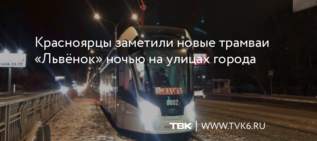 Красноярцы заметили новые трамваи «Львёнок» ночью на улицах города
