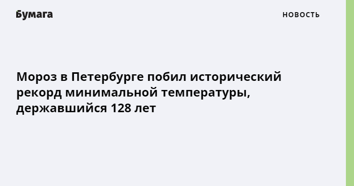 Температура в Петербурге к 7 часам утра опустилась до −20,9 градуса. Последний раз такие морозы в городе фиксировали 128 лет назад — в 1893 году. Тогда температура была на 0,4 градуса выше.