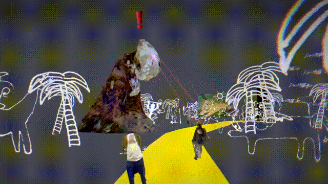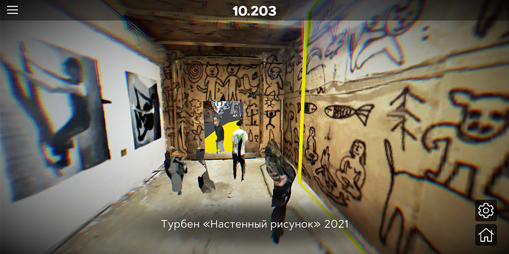 Для некоторых объектов создали отдельные виртуальные пространства, не привязанные к зданию. Например, работу Турбена «Тебя не поймут» превратили в темный зал с желтыми и красными фигурами.