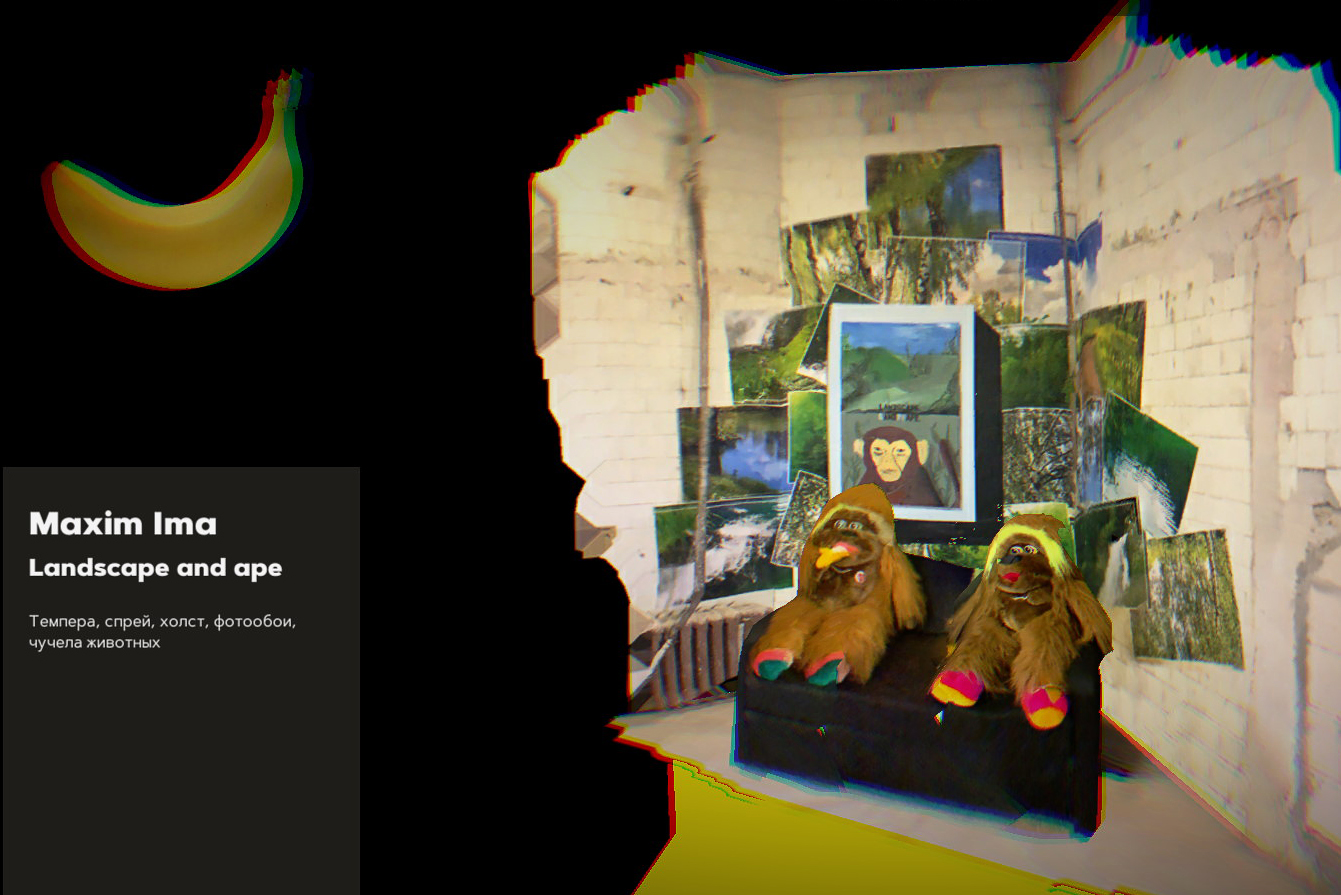 Представленные на выставке работы тоже поместили в декорации бывшего заводского здания. Когда в поле зрения пользователя попадает то или иное произведение, рядом с ним всплывает краткая аннотация с именем автора и названием экспоната.