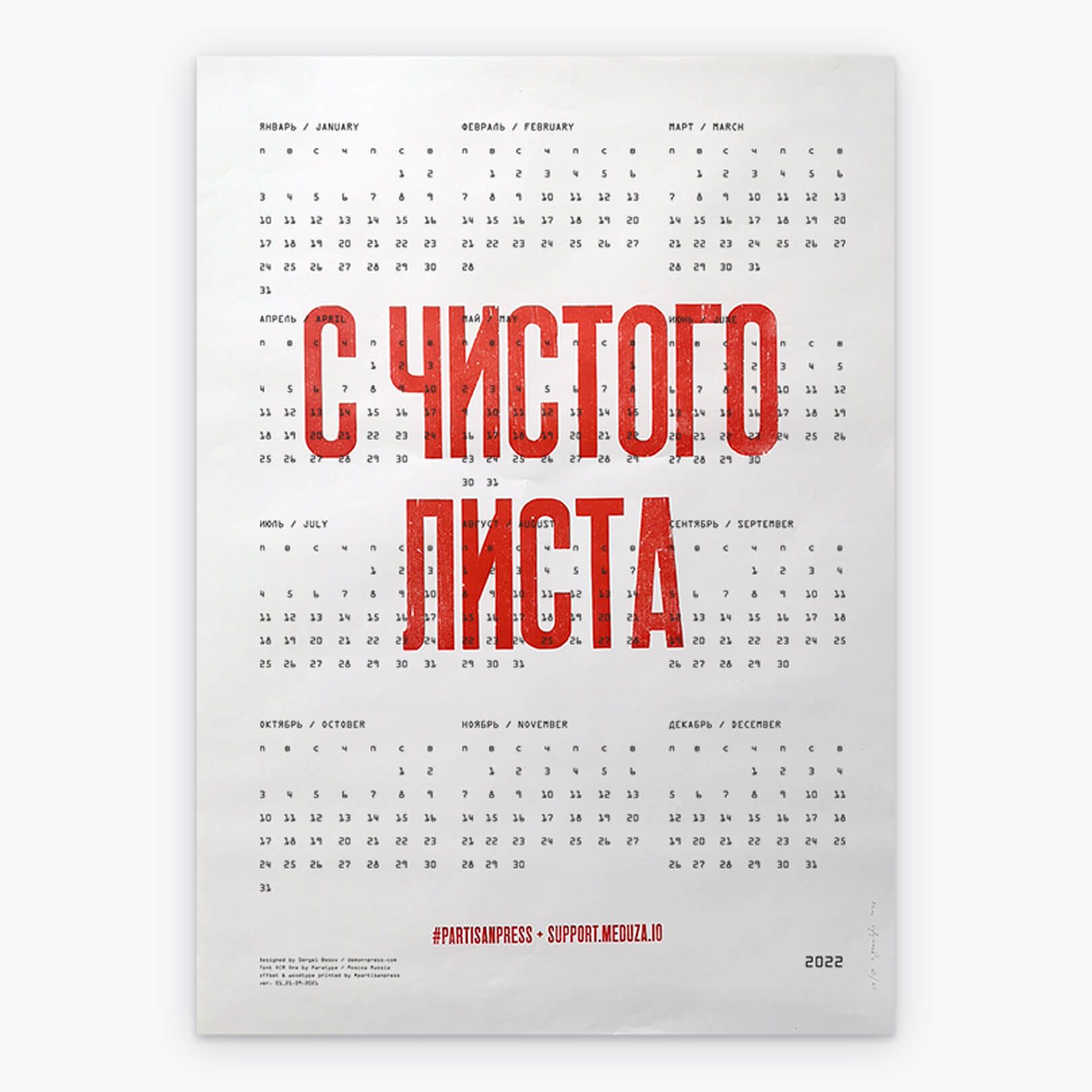 Будет ли следующий год легче, чем этот, мы прогнозировать, пожалуй, не отважимся. С какими ощущениями мы его встречаем — примерно понятно. Поэтому календарь на 2022-й, который мы выпустили совместно с Partisan Press, так и называется: «С чистого листа».