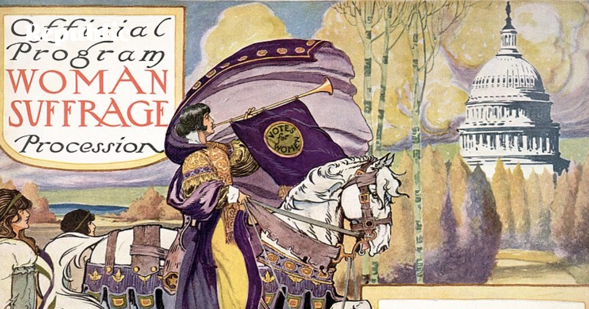 Программа суфражистского Женского марша в Вашингтоне 3 марта 1913 года оформлена в официальных цветах Национальной женской партии США: золото символизирует «свет жизни, чистый и непоколебимый, направляющий нас к цели», белый — символ чистоты, а царственный пурпур — «цвет верности и неизменной стойкости»