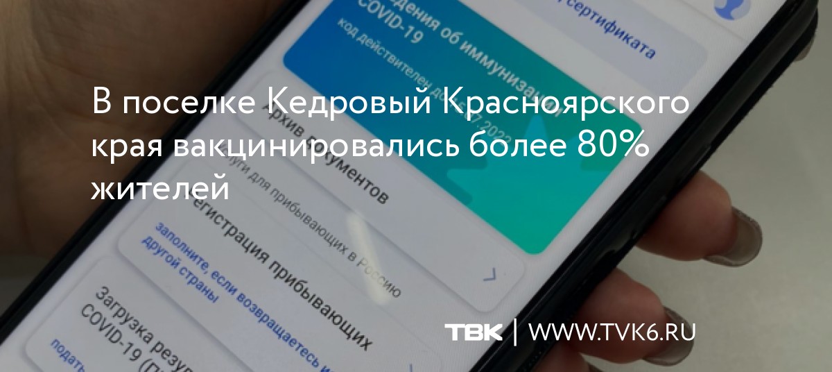 В Минздраве отметили, что всего в Красноярском крае вакцинировались 53,2% жителей. Кроме Кедрового, в числе лидеров остаются Таймырский, Эвенкийский, Туруханский, Мотыгинский и Емельяновский районы.