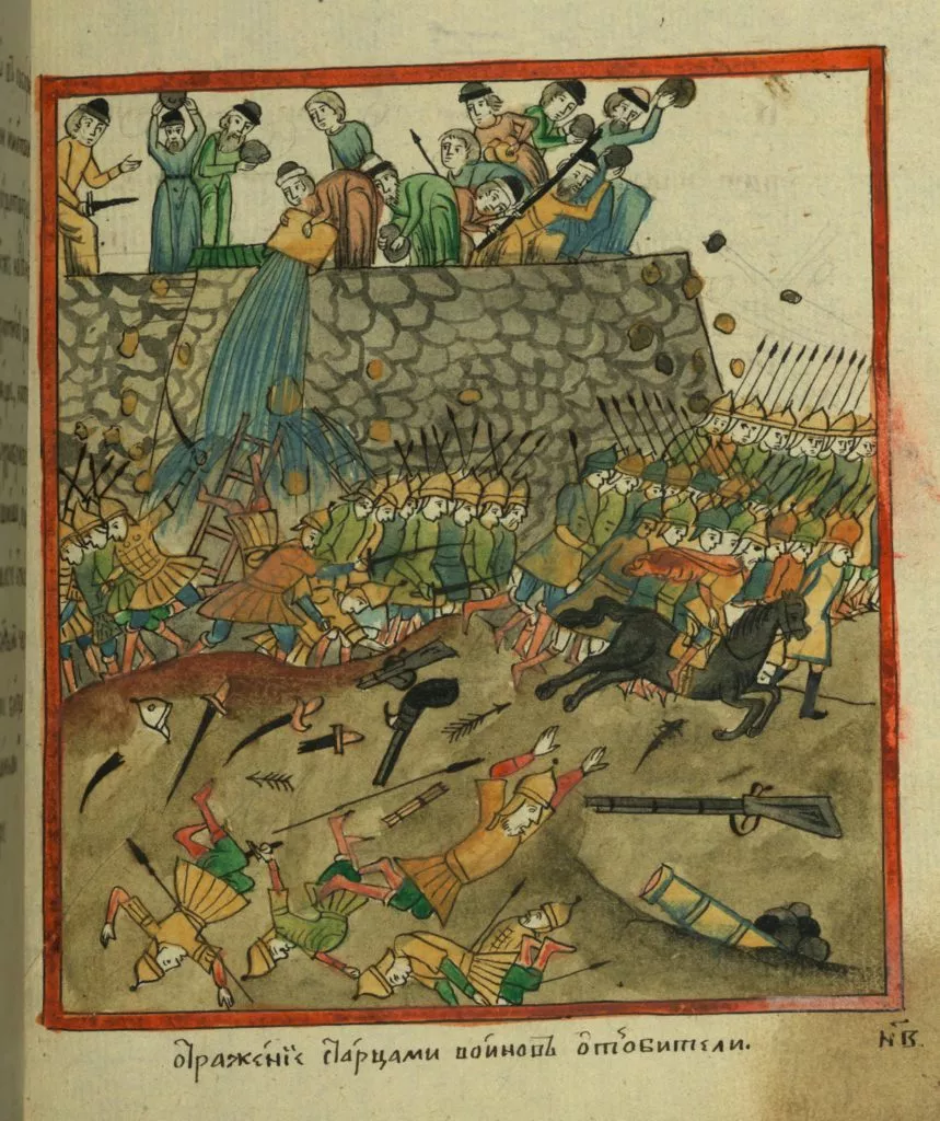 Отражение старцами воинов от обители.