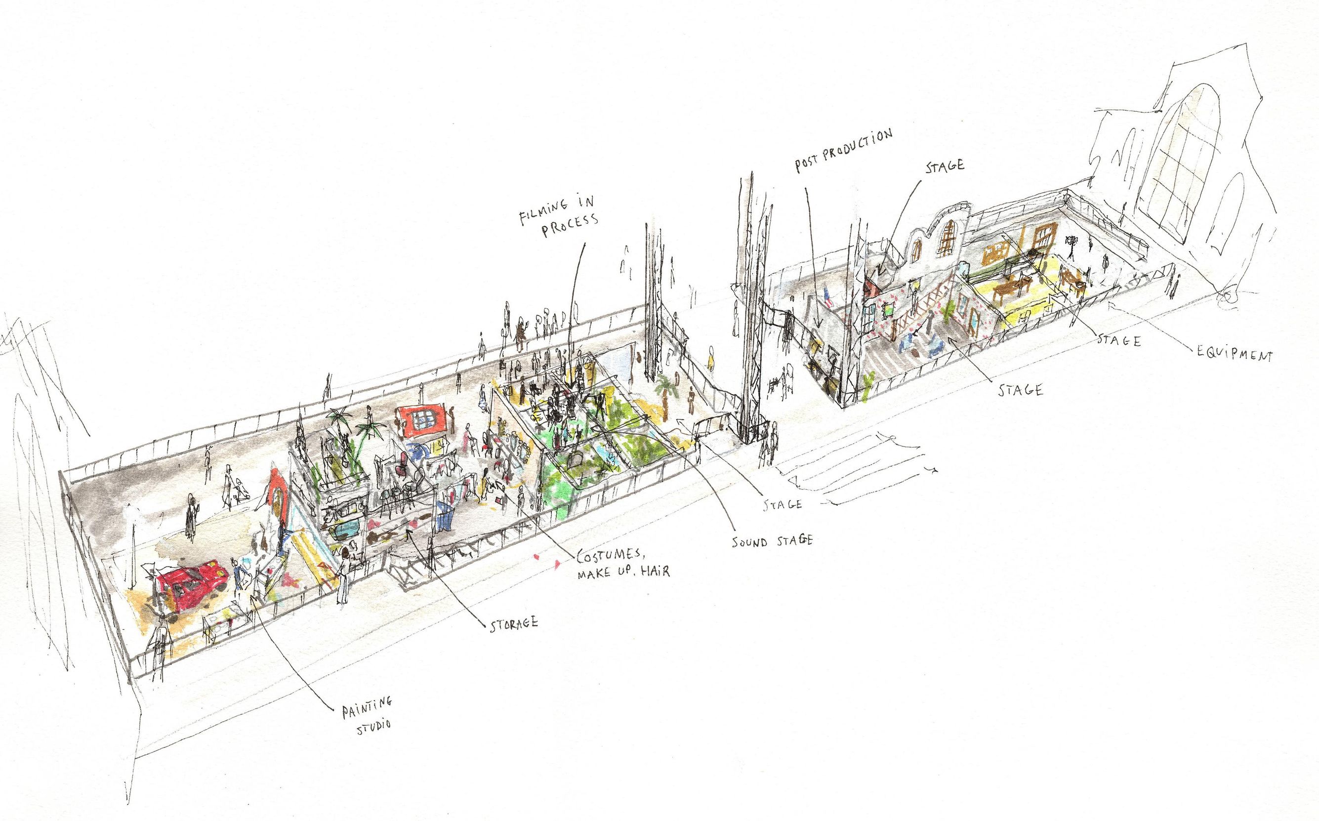 Перед нами документальная производственная драма, но ее герои не рабочие с инженерами, а художники. Съемочные павильоны, гримерки, костюмерные и склады декораций выстроены в линию вдоль намеченного архитектором Ренцо Пьяно «проспекта», словно конвейер: так Рагнар отсылает нас к индустриальной истории здания.
