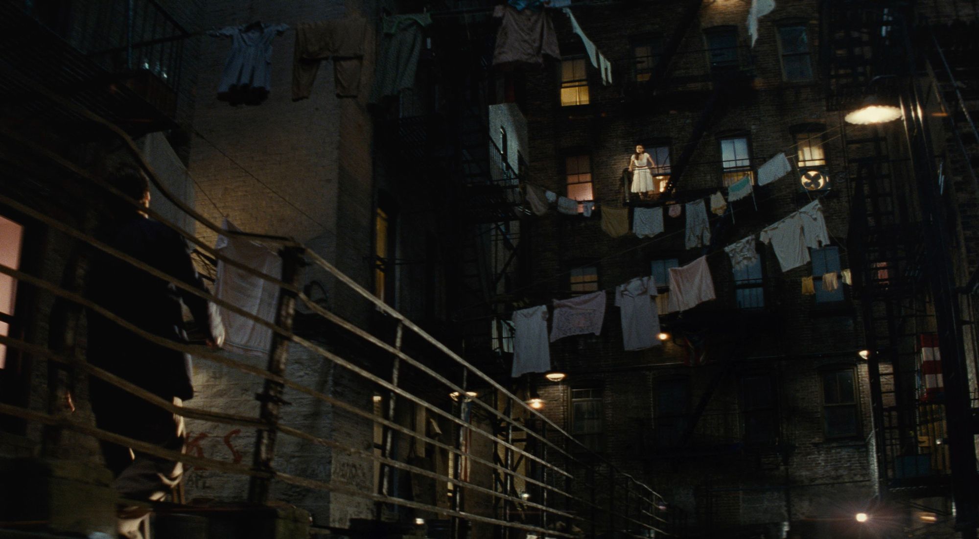 Зато чистый романтизм в духе уже не бернстайновском, но шекспировском Спилберг позволяет себе в сцене свидания, отправляя Тони с Марией на север Манхэттена, в «средневековый замок» «Клойстерс» («One hand, one heart»). Духом оригинальной трагедии Шекспира пропитана и сцена, которой в «Ромео и Джульетте» не было, — эпичное побоище двух банд в гигантском ангаре для хранения соли, среди барханов которой и сражаются вожаки.