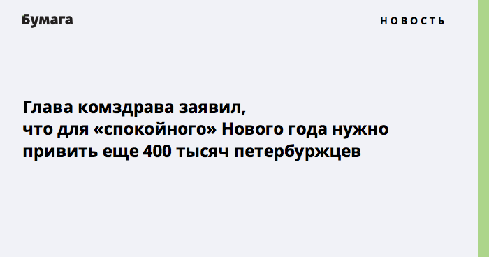 Глава комздрава заявил, что для «спокойного» Нового года нужно привить еще 400 тысяч петербуржцев