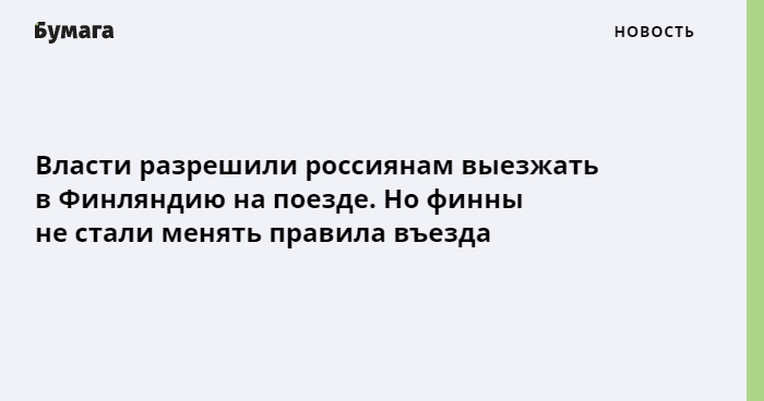 В начале недели правительство разрешило россиянам свободно выезжать в Финляндию на поезде — он должен начать курсировать между странами 12 декабря. Несмотря на это, в Финляндии не будут менять правила въезда в страну для туристов.