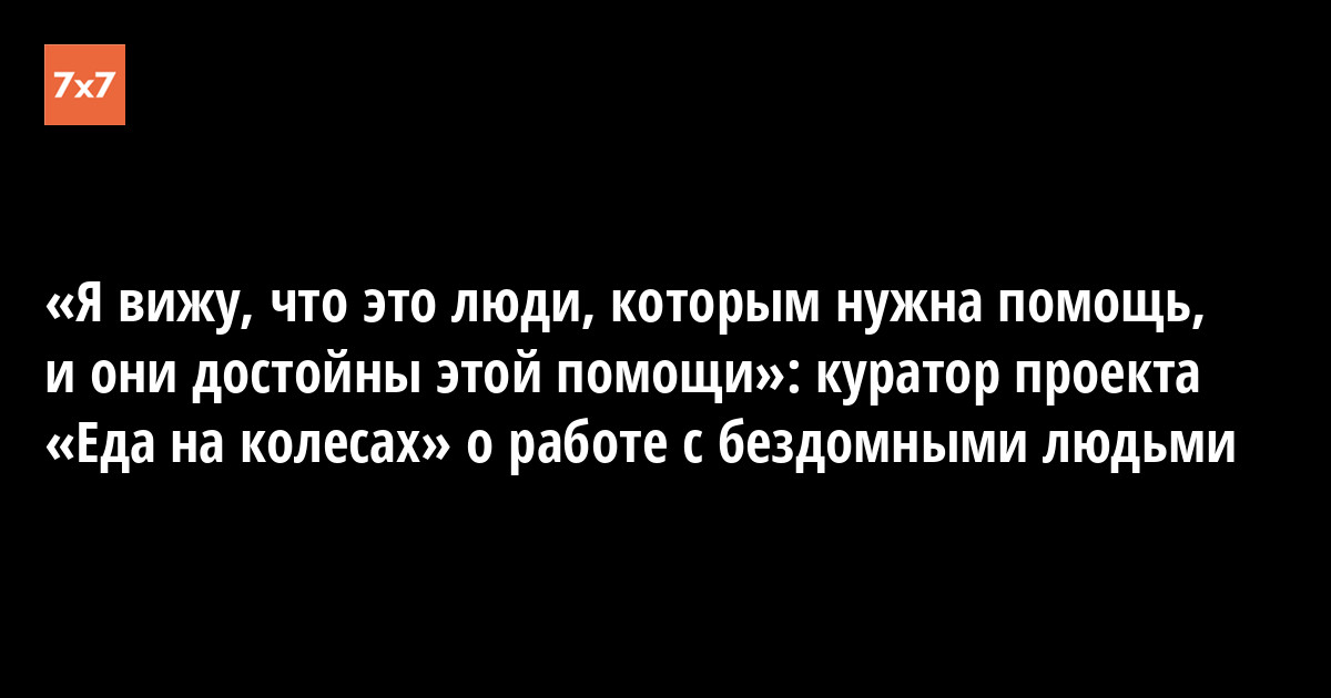 «Я вижу, что это люди, которым нужна помощь, и они достойны этой помощи»: куратор проекта «Еда на колесах» о работе с бездомными людьми
