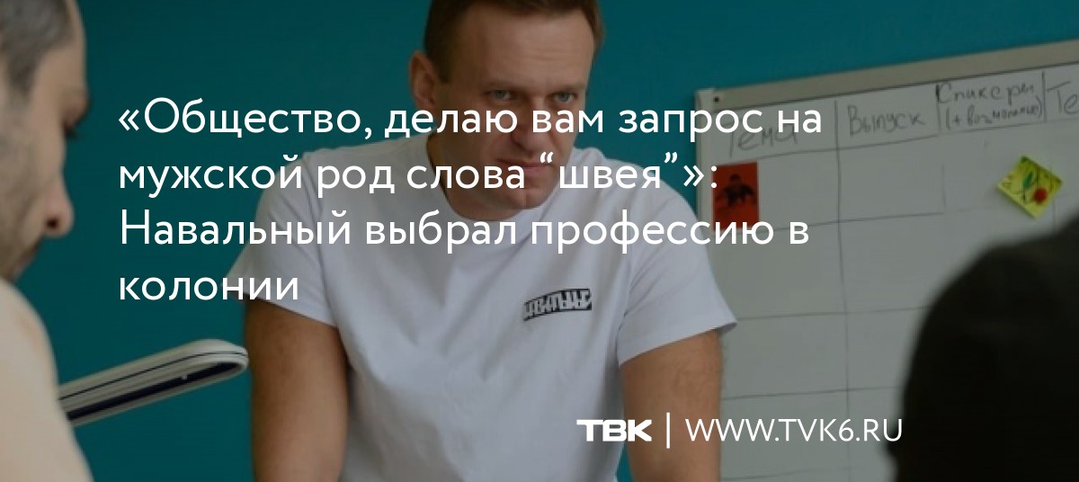 Напомним, Навальный с марта находится в исправительной колонии №2 в Покрове Владимирской области, где отбывает наказание по делу о мошенничестве. Он, его сторонники и многие правозащитные организации считают уголовное дело политическим.«Так что я и раньше-то был не против феминитивов (то есть слов вроде “авторка” и “редакторка”), но считал это неважной ерундой и хорошим поводом для троллинга, а сейчас так вообще горячо поддерживаю право каждого называться так, как он хочет. В конце концов, язык для этого и существует, и он должен развиваться в соответствие с запросами общества. Общество, делаю вам запрос на мужской род профессии “швея”».