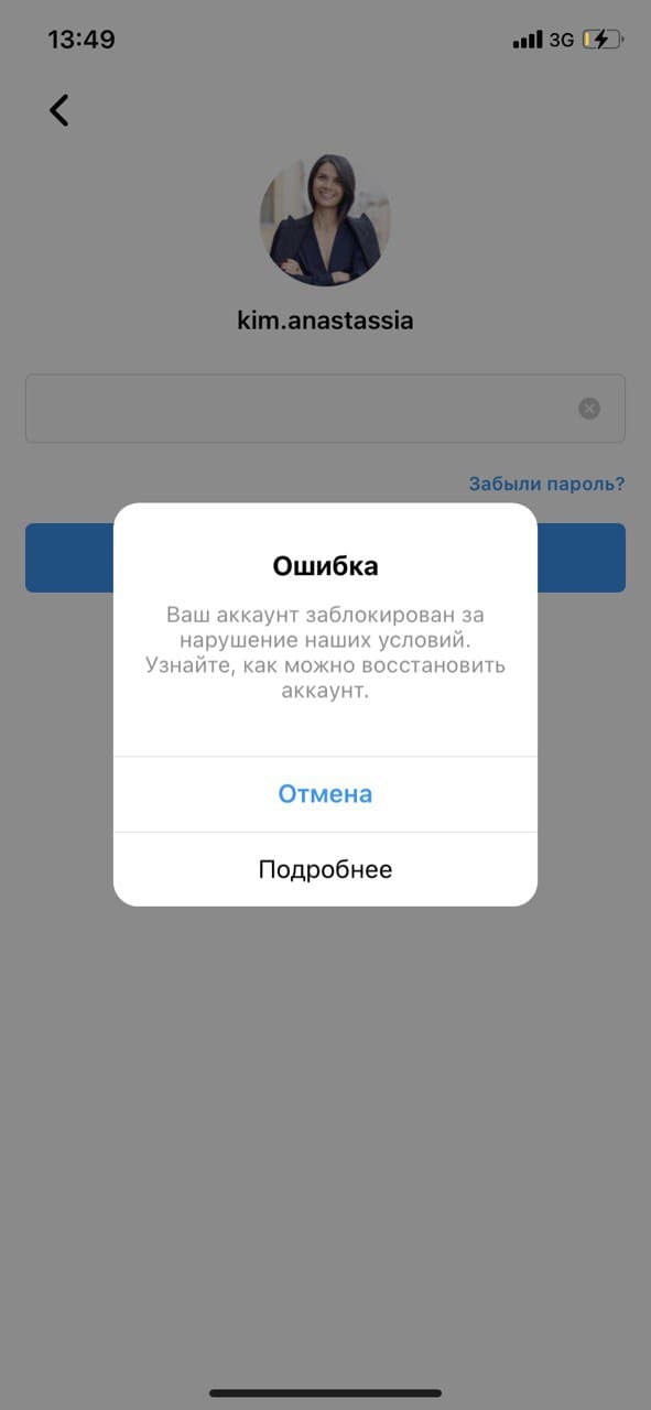 — Первое, что надо сделать, убедиться, что это именно блок, а не кража аккаунта, и связаться с инстаграмом по форме «Я не могу зайти в свой аккаунт». Из ответа можно понять, что случилось. Второе — если вдруг такое произойдет опять, я подам одну жалобу через инстаграм и сразу буду писать в фейсбук. Третье — не буду тратить свое время на разговоры с помогаторами.