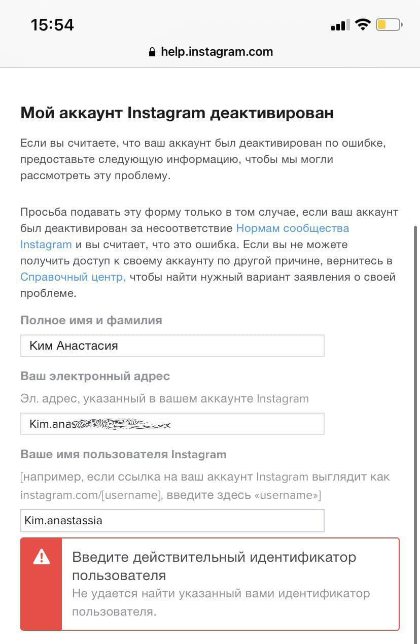 — Еще через сутки мой аккаунт пропал, его не выдавало в поиске, ссылки на него не работали. Я отправляла три вида жалоб: «Меня заблокировали, но я не согласна», «Мой аккаунт был деактивирован и я не согласна» и еще что-то. Нужно было указать аккаунт — и я не могла подать жалобу, потому что мне выдавало «вашего аккаунта не существует».