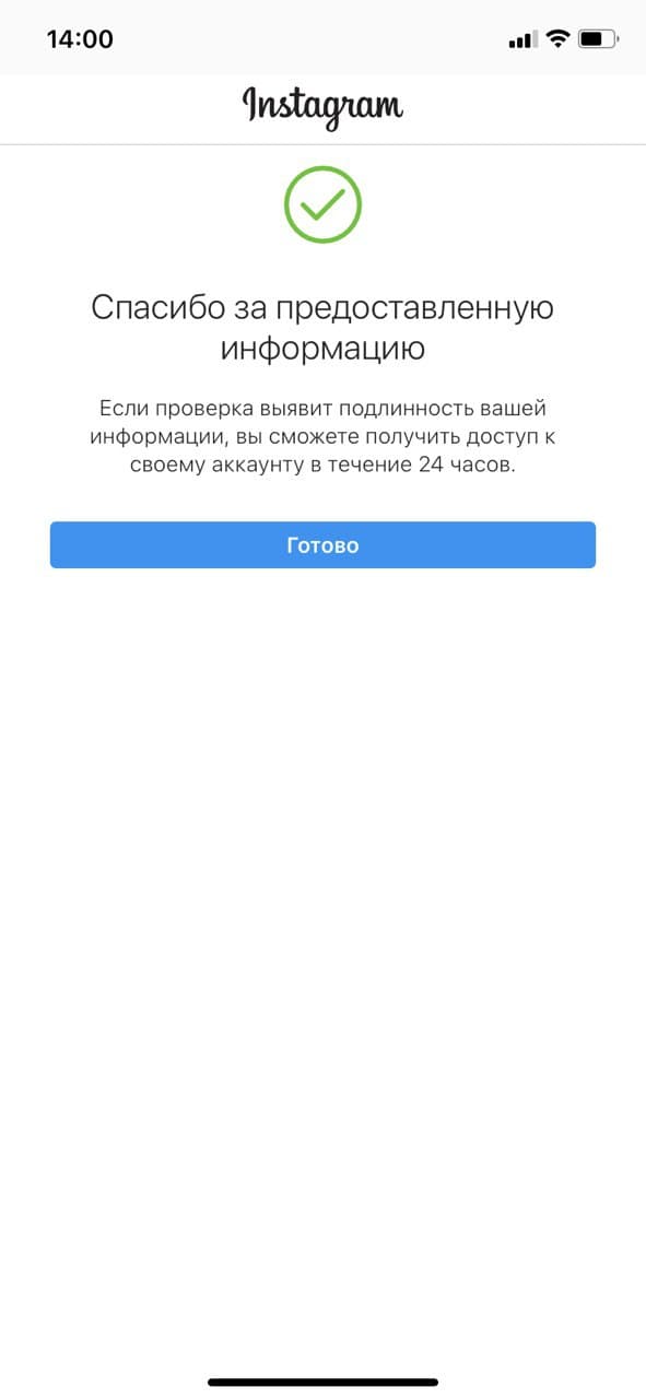 Вдруг мне приходит какой-то код и требование ввести его. Я ввожу — приходит сообщение: «Спасибо за предоставленную информацию. Если проверка выявит подлинность вашей информации, вы сможете восстановить доступ к своему аккаунту в течение 24 часов». В тот момент я подумала, что меня кто-то пытался взломать и сработала двухфакторная защита.