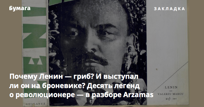 Издание проанализировало десять самых популярных легенд о Ленине. Среди них, например, такие: он был маленьким с кудрявой головой, ел чернильницы, устроил революцию, потому что мстил за брата, выступал на броневике, был немецким агентом, умер от сифилиса и так далее.