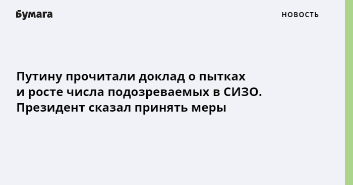 В среду, 9 декабря, проходит встреча Владимира Путина с Советом по правам человека. Президент высказался за решение вопроса о пытках и против того, чтобы неоправданно «засаживать» подозреваемых в СИЗО. «Бумага» расшифровала часть встречи.