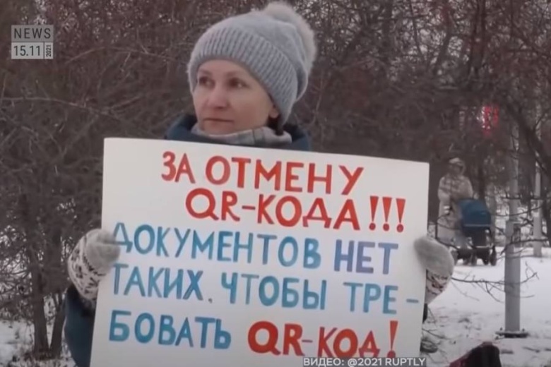 Митинг против qr-кодов. Фото: RTVI / youtube.com