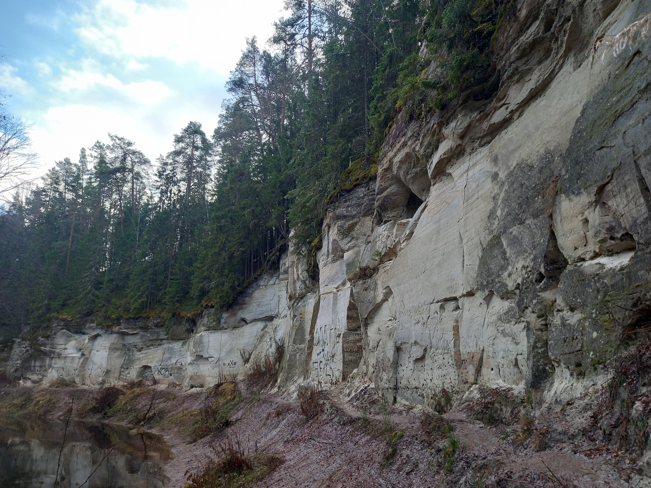 А теперь сами Белые скалы. Так я назвал обрыв из белого окаменевшего песка. Интересно, что это название я дал лет шесть назад, когда так это место еще не называлось, и оно прижилось. Теперь многие турклубы, читающие мой блог, взяли мой маршрут сюда и тоже так называют это место.