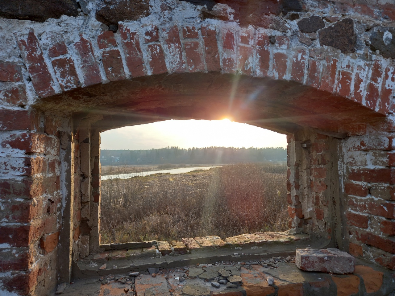 До электрички еще час, поэтому идем посмотреть на развалины старинного дома, стоящего у реки.