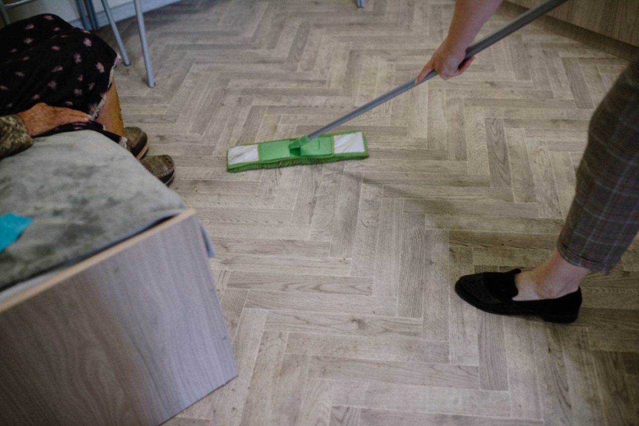 Татьяна Замилова убирает в доме Риммы Михайловны, потому что социальный работник из опеки накануне заболела и не смогла прийтиФото: Алина Десятниченко для ТД У Риммы нет ни детей, ни внуков.