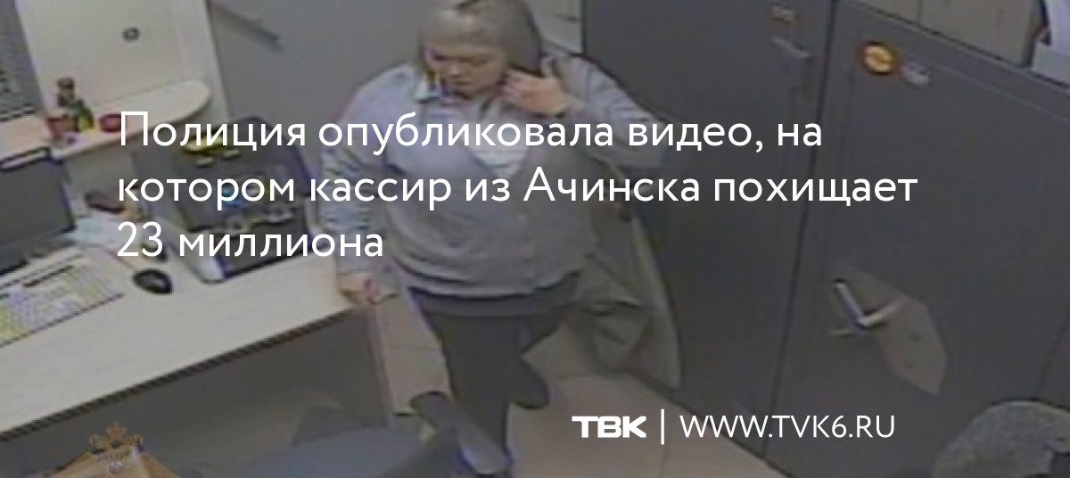 Полиция опубликовала видео, на котором кассир из Ачинска похищает 23 миллиона