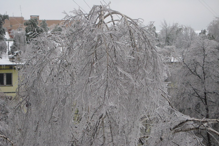 Ледяной дождь — это особый вид осадков, состоящий из мелких прозрачных ледяных шариков, то есть замерзших в воздухе капель дождя, писал центр «Фобос». «Где-то над земной поверхностью есть слой воздуха с положительной температурой, а под ним — с отрицательной, где капельки дождя, падая, замерзают, образуя ледяной дождь. В результате на поверхности формируется ледяная корка», — объясняют синоптики.
