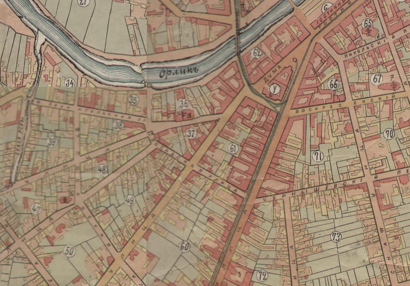 На перекрестке с улицей Кромской (ныне Комсомольской) старая 1-я Посадская заканчивалась. И начинался Чернышевский переулок с совсем другой, преимущественно деревянной застройкой, частными домами и огородами. Две эти столь разные улицы объединили в одну в 1930-м, еще сильнее запутав и без того непростую историю 1-й Посадской. Но именно там, в дальней части улицы ближе к реке, старины сохранилось заметно больше.