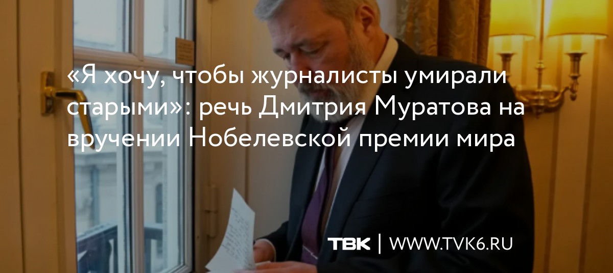 «Я хочу, чтобы журналисты умирали старыми»: речь Дмитрия Муратова на вручении Нобелевской премии мира
