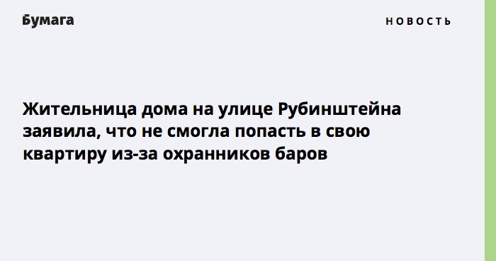 Жительница дома на улице Рубинштейна заявила, что не смогла попасть в свою квартиру из-за охранников баров