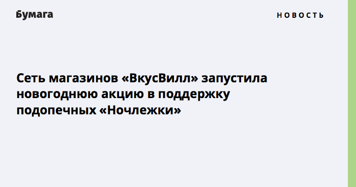 Сеть магазинов «ВкусВилл» запустила новогоднюю акцию в поддержку подопечных «Ночлежки»