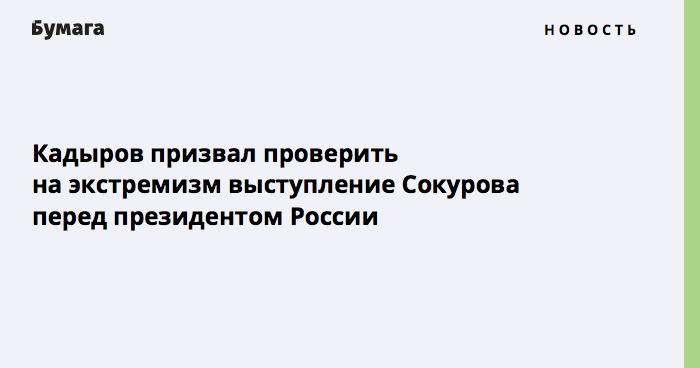 Глава Чеченской Республики Рамзан Кадыров призвал проверить на экстремизм выступление режиссера и члена СПЧ Александра Сокурова на заседании совета по развитию гражданского общества и правам человека с участием президента России Владимира Путина.