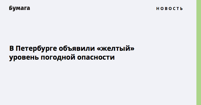 В Петербурге объявлен «желтый» уровень погодной опасности. Об этом сообщили в пресс-службе Смольного.