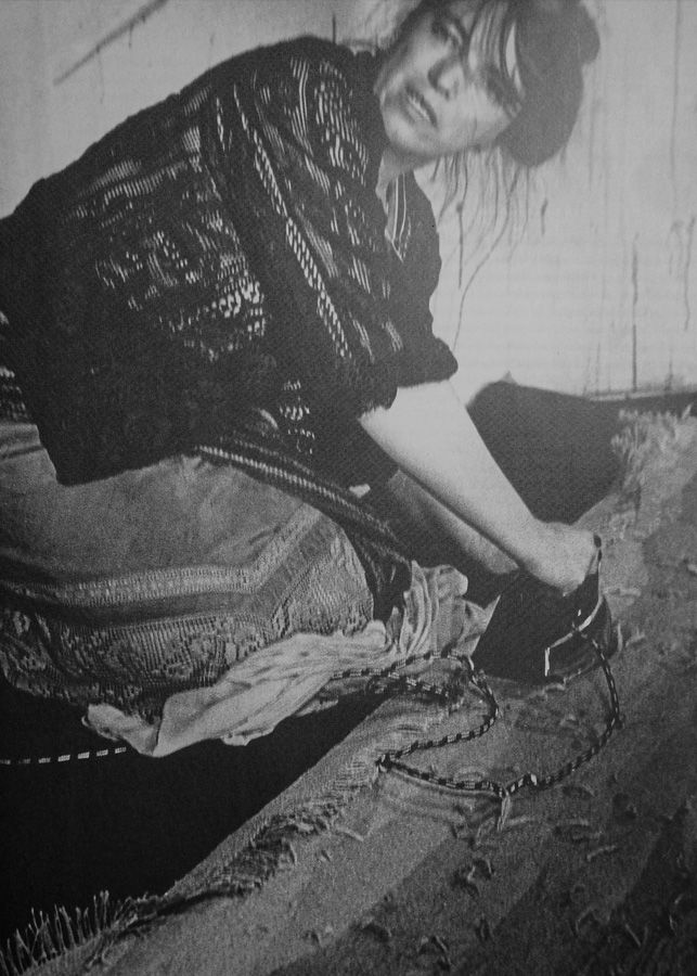 Мы увидели, что цвет нитей сильно изменился: «левая» сторона была яркой, а лицевая — тусклой. В прошлом художники окрашивали нити природными красками. Так делали на протяжении многих веков — и делают до сих пор художники моего поколения, которые живут в деревнях, — мастера, которые ткут чулки, перчатки. Работать с растительными пигментами интересно, но в городе это делать невозможно, так как необходимо запасать большое количество растений. Поэтому я всегда работала только с химическими красителями. Но единственный раз, когда сама готовила краски, — это [во время поездки в] Рундаль, [где мы восстанавливали] четыре старинных гобелена, над которыми мы трудились два года.