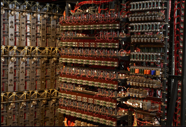 “Бомба Тьюринга”: электронно-механический протокомпьютер, предназначенный для взлома кодов нацистской системы “Энигма”. К 1943 году 210 таких машин, установленных в центре дешифровки в Блетчли-парке, могли читать до 3000 шифрованных немецких сообщений в день и, как считается, приблизили окончание Второй мировой минимум на два года. На снимке — реплика машины, построенная в 2000-х годах: все оригинальные “бомбы” Черчилль по соображениям безопасности приказал уничтожить вскоре после окончания войны.