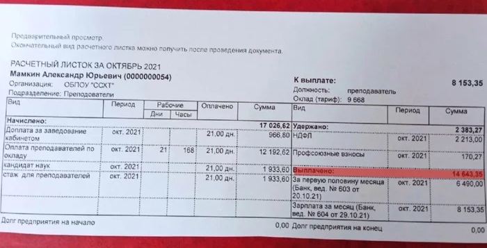Бредовая ситуация, когда кандидат наук, отработав целый месяц в две смены, получает зарплату вполовину от средней по техникуму