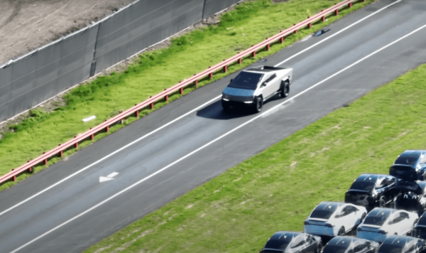 На полигоне Tesla засняли новый прототип пикапа Cybertruck: появились боковые зеркала и огромная щётка стеклоочистителя