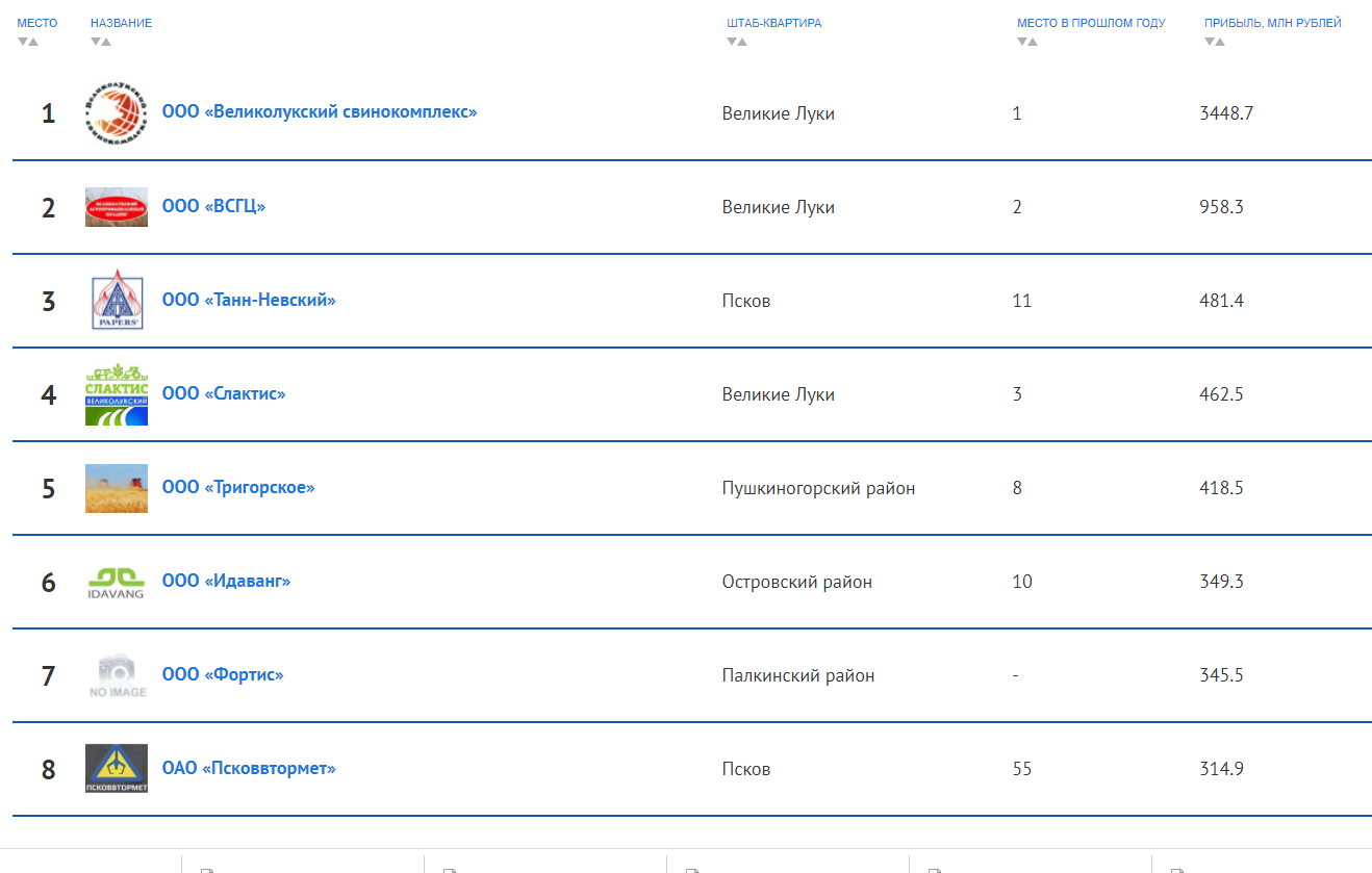 «Псковская губерния» составила рейтинг топ-100 самых прибыльных компаний Псковской области