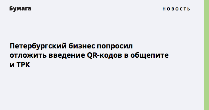 - Власти Петербурга планировали ввести QR-коды в общепите и на объектах розничной торговли с 1 декабря. Однако позже перенесли дату введения на 27 декабря.