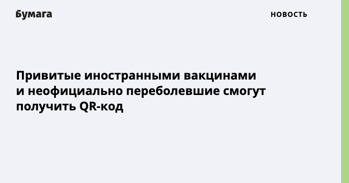 Привитые иностранными вакцинами и неофициально переболевшие смогут получить QR-код