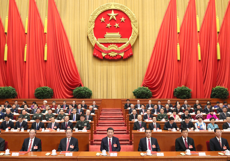 Президиум 5-й Сессии ПК ВСНП 12-го созыва. Чжан Гаоли — первый справа. Пекин, 15 марта 2017 года. Фото: Global Look Press