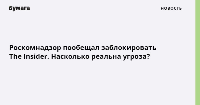 Роскомнадзор пообещал заблокировать сайт издания The Insider «после вступления в силу судебного решения за отсутствие маркировки СМИ-иноагента». Об этом пишет «РИА Новости» со ссылкой на ведомство. Объясняем, почему это не означает, что The Insider заблокируют прямо сейчас (но в дальнейшем угроза блокировки вполне реальна).
