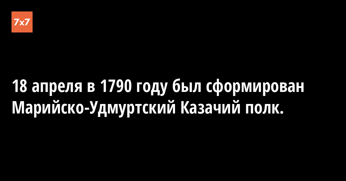 18 апреля в 1790 году был сформирован Марийско-Удмуртский Казачий полк.