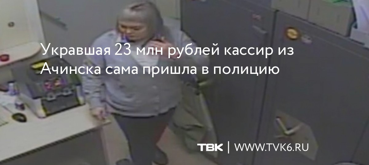 Укравшая 23 млн рублей кассир из Ачинска сама пришла в полицию