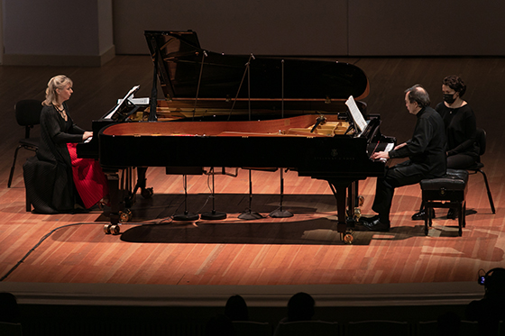 Московская филармония продолжает отмечать собственное 100-летие ревизией музыкальных залежей прошлого века, знаменитых и не очень. Проект «Другое пространство. Weekend», растянутый отдельными однодневными порциями на весь сезон, — это эхо большого фестиваля Владимира Юровского. Самого маэстро там, правда, нет, зато международным знаком качества на афише стартового уикенда служили имена пианистов Пьер-Лорана Эмара и Тамары Стефанович. Вместе и порознь они исполнили самую бескомпромиссно-авангардную часть программы размахом в сто лет из музыки Николая Рославца (соната № 2 (1916)), Андрея Волконского («Musica stricta» (1957)), Харрисона Бёртуисла («Keyboard Engine» (2018)) и Пьера Булеза («Структуры», II книга (1956–1961)). И пусть ведущий концерта Ярослав Тимофеев назвал алеаторические послабления, допускаемые Булезом в одной из частей его легендарного установочного сочинения, «точечной демократией, напоминающей приложение “Активный гражданин”», расслабляться слушателям тут не полагалось.