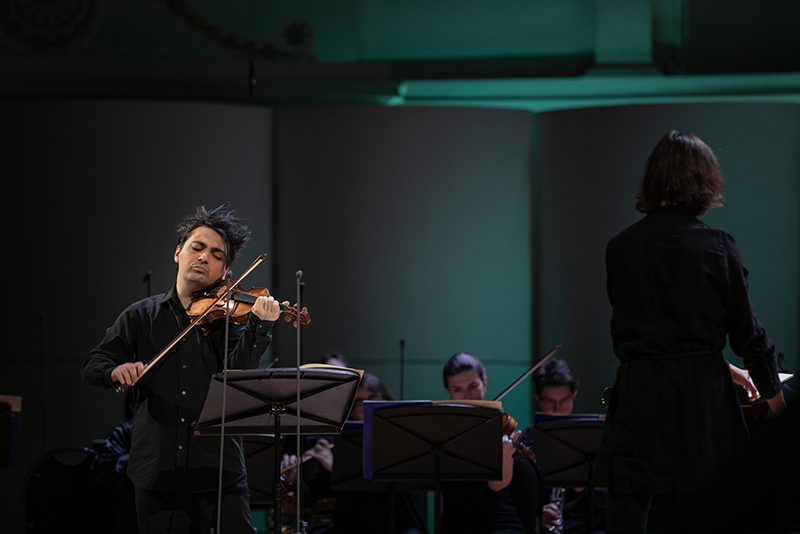 Вторую, более сговорчиво-постмодернистскую, часть этого насыщенного вечера дирижер Филипп Чижевский провел со своим ансамблем Questa Musica. Главными звездами были альтист Сергей Полтавский (марафонское соло в «Chemins II» Лучано Берио (1967)), Иоганн Себастьян Бах (Контрапункт XIX из «Искусства фуги» в оркестровке все того же Берио (2001)) и князь Джезуальдо да Веноза (мадригал аристократа-маньериста «Le voci sottovetro» в авторской аранжировке Сальваторе Шаррино украсил ангельский контратенор Михаила Широченко). Ну а главным и безальтернативным чудом — «Anahit» (1965) Джачинто Шельси, посвященная Венере лирическая поэма для ансамбля и солирующей скрипки (Даниил Коган). Творения этого графа-затворника из XX века, упрямо топтавшегося на одной или нескольких нотах, с годами кажутся все более убедительными. Загадка, не требующая разгадки, вопрос, не требующий ответа.