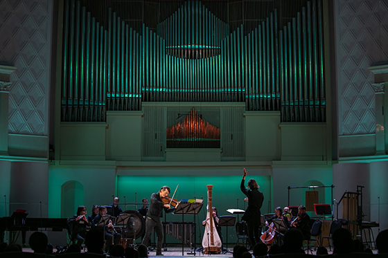 © Предоставлено пресс-службой Московской филармонии Чего не скажешь о сочинении Луиджи Ноно для двух скрипок «Hay que caminar» («Нужно идти» (1989)). Ему была посвящена третья, полуночная, часть программы, во время которой скрипачи Роман Минц и Айлен Притчин в меру артистично и задумчиво (изначально эта музыка адресована Гидону Кремеру и Татьяне Гринденко) блуждали от пюпитра к пюпитру по сцене зала Чайковского и колоннаде над ней. Понятно, что ответа на вопрос «Зачем нужно идти?» не предполагалось автором с самого начала, но вообще-то уже непонятно, почему это должно вызывать умиление.