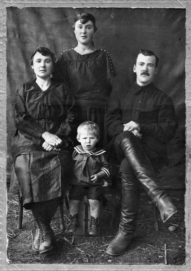 Д. Е. Сидорова (слева) со вторым мужем Александром Никифоровичем Сидоровым, дочерью Грушей и приёмным сыном Васей. Тюмень. 1920 г. Фото: «Русский мiръ»